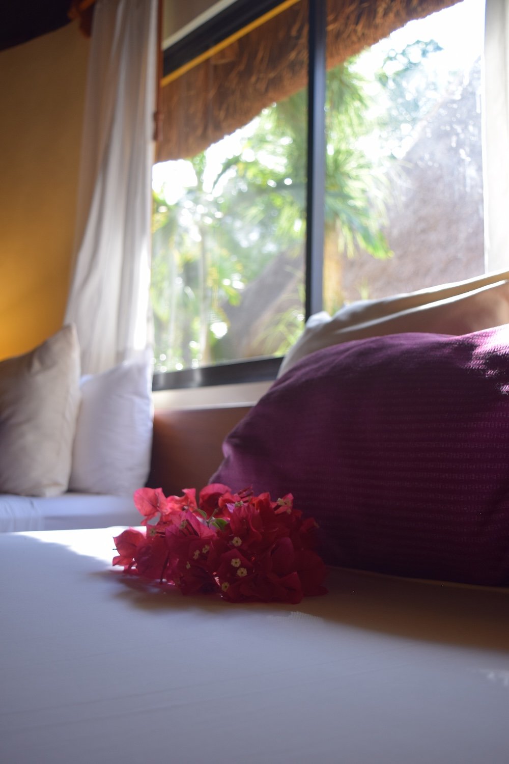 Bungalow con doble cama matrimonial, aire acondicionado, Jacuzzi, rodeado de naturaleza y tranquilidad. Acceso al cenote y chalecos salvavidas sin costo adicional para huéspedes durante su estancia.